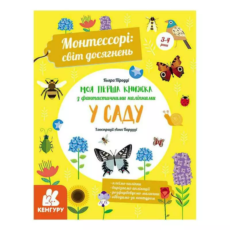 гр "Монтессорі: світ досягнень. Моя перша книга з фантастичними наліпками. У саду" КН1067003У /Укр/ (10) "Кенгуру"