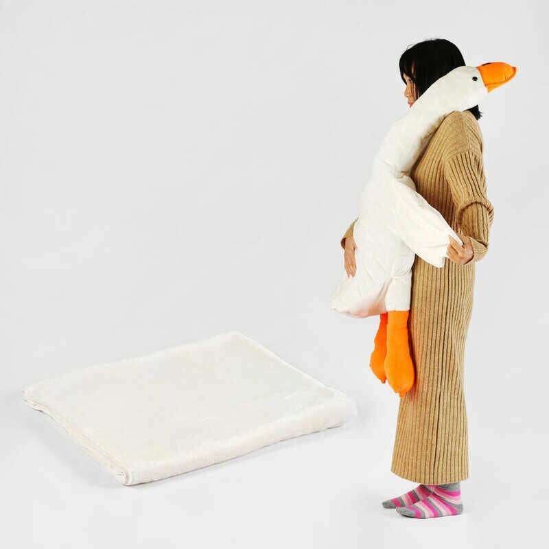 гр М`яка іграшка "Гусак-обіймак" 47568 (20) З ПЛЕДОМ 101х93 см, висота іграшки 100 см, колір білий
