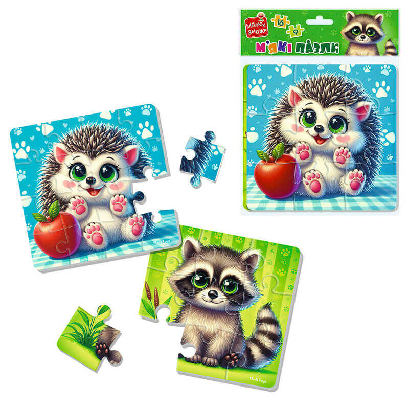 гр М’які пазли "Єнот та їжачок" VT1102-36 (24) "Vladi Toys", 2 пазли, 9 елементів та 16 елементів, в пакеті