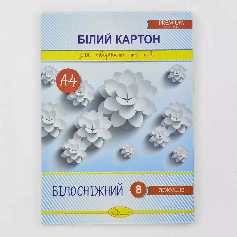 гр Набір білого картону "Білосніжний" А4, 8 аркушів (20) КБ-А4-8 / АП-1116 "Апельсин"