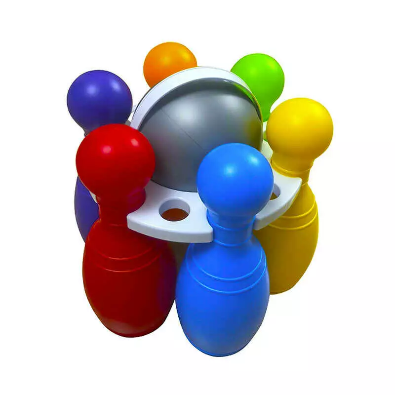 гр Набір дитячий "Кеглі Великі №2" кольорові 0282 (3) "BAMSIC", 6 кегль, куля, у сітці