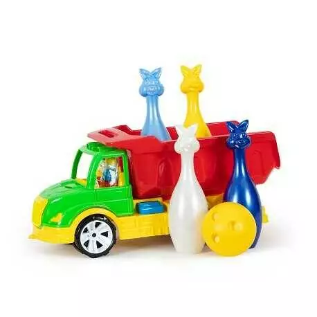 гр Набір дитячий "Самоскид Mati з кеглями" 009/16 (3) "BAMSIC", в сетке
