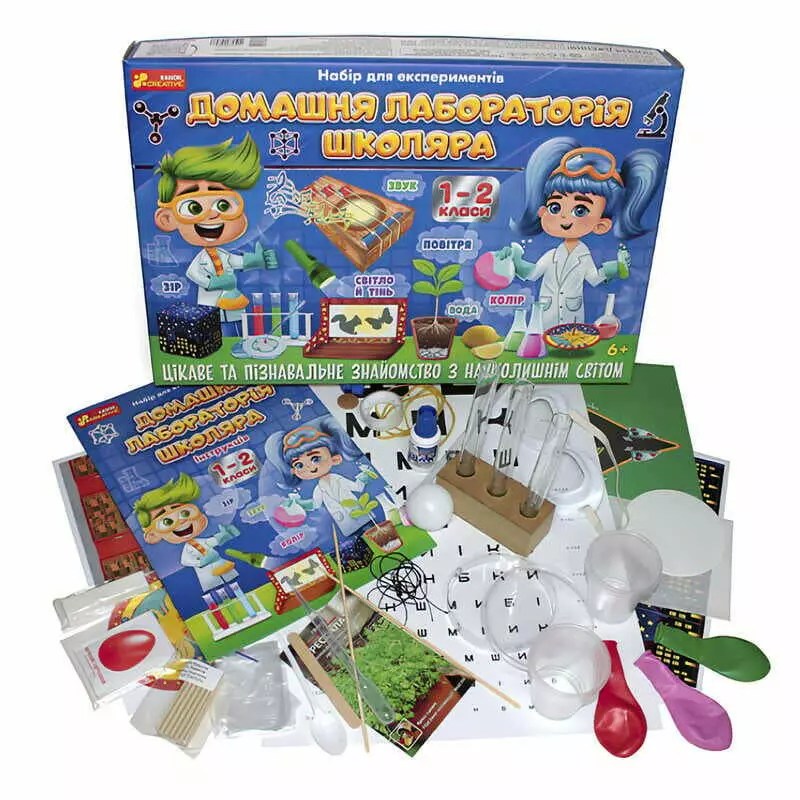 гр Набір для експерементів. Домашня лабораторія школяра 1-2 клас. 12132068У / 9781У (6) "РАНОК"