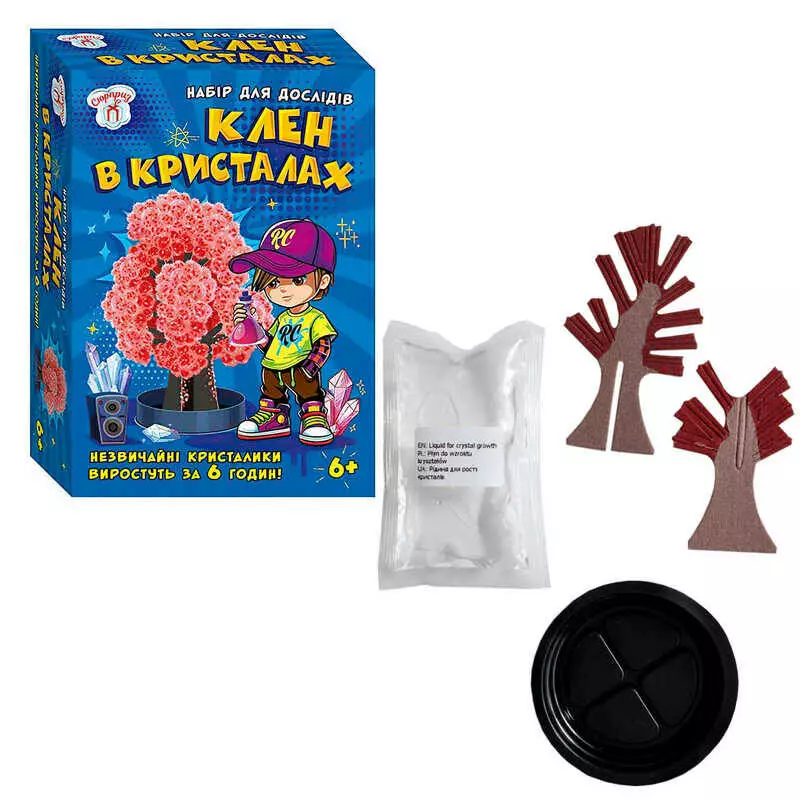 гр Набір для експериментів "Клен в кристалах (червоне)" 10114183У (95) "Ранок", розчин, основа, в коробці
