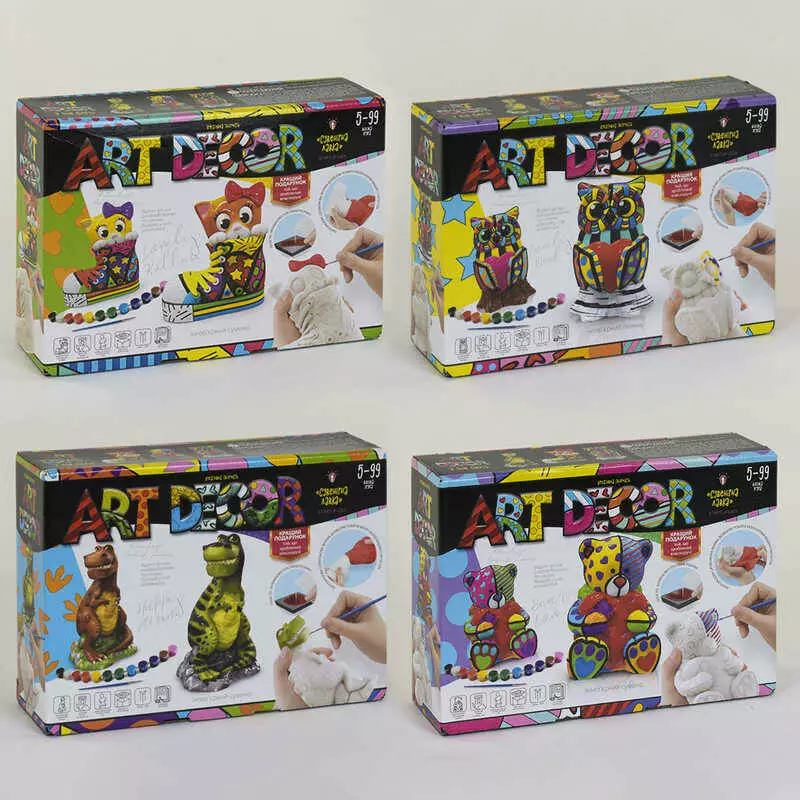 гр Набір для гіпсового лиття "ART DECOR" укр ARTD-01-01U,02U,03U,04U (8) "Danko Toys" ВИДАЄТЬСЯ МІКС ВИДІВ