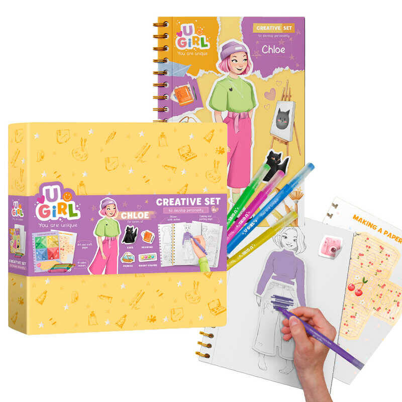 гр Набір для творчості "Хлоя" 300953 (8) "DoDo", блокнот із завданнями, розмальовки, наліпки, 10 кольорових маркерів, в коробці