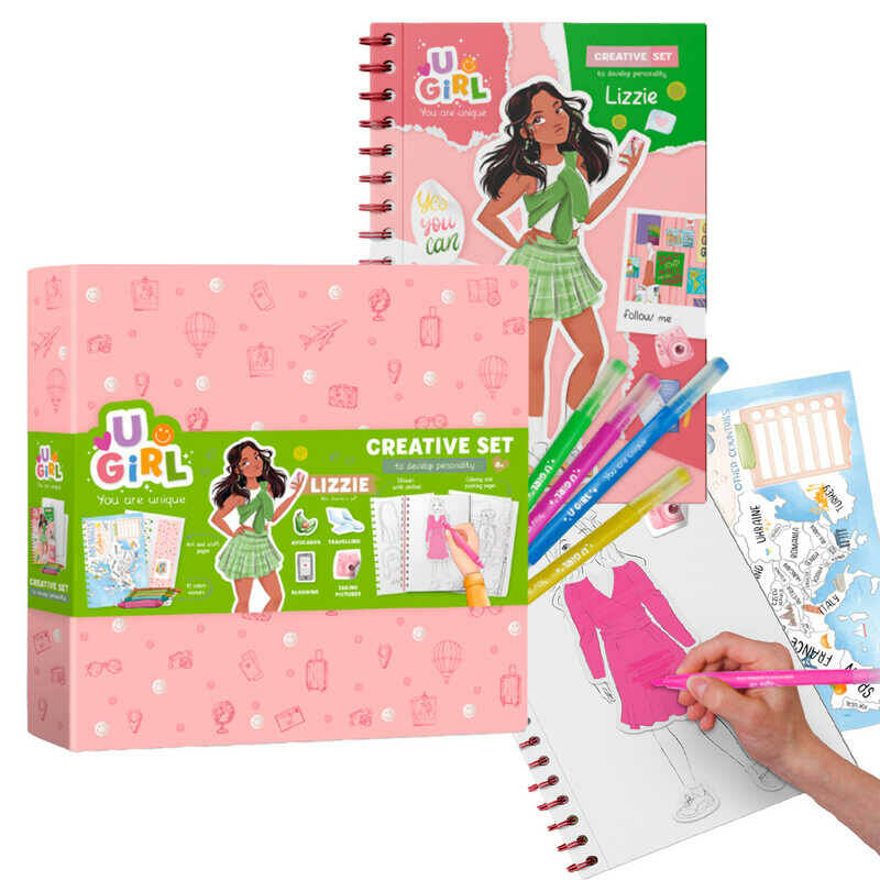 гр Набір для творчості "Ліззі" 300954 (8) "DoDo", блокнот із завданнями, розмальовки, наліпки, 10 кольорових маркерів, в коробці