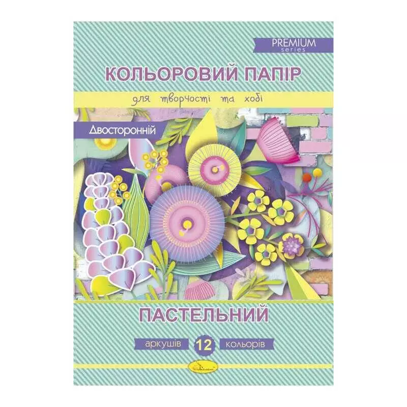 гр Набір кольорового двостороннього паперу "Пастельний" А4 12 аркушів КППДв-А4-12 / АП-1214 (25) "Апельсин"