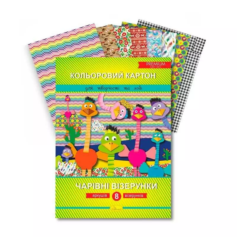 гр Набір кольорового картону "Чарівні візерунки" Преміум А4, 8 арк. ККЧВ-А4-8 / АП-1108 (20) "Апельсин"