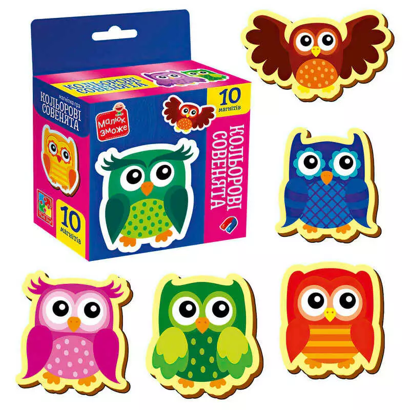 гр Набір магнітів "Кольорові совенята" VT3106-38 (30) "Vladi Toys", 10 елементів, у коробці