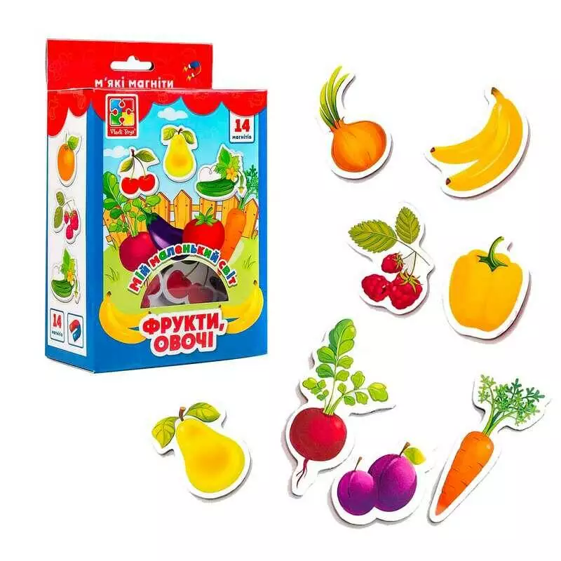 гр Набір магнітів "Мій маленький світ. Фрукти, Овочі" (8) VT3106-11 укр "Vladi Toys"