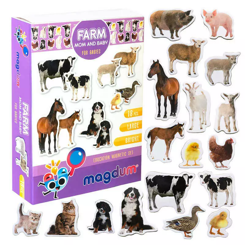 гр Набір магнітів ML4031-08 EN "Farm Mom and Baby" (70) "Magdum", англ. мова, 18 магнітів, в коробці