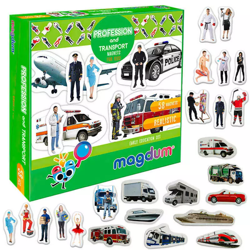 гр Набір магнітів "Професії і транспорт" ML4031-31 EN (24) "Magdum", англ. мова, 58 магнітів, в коробці