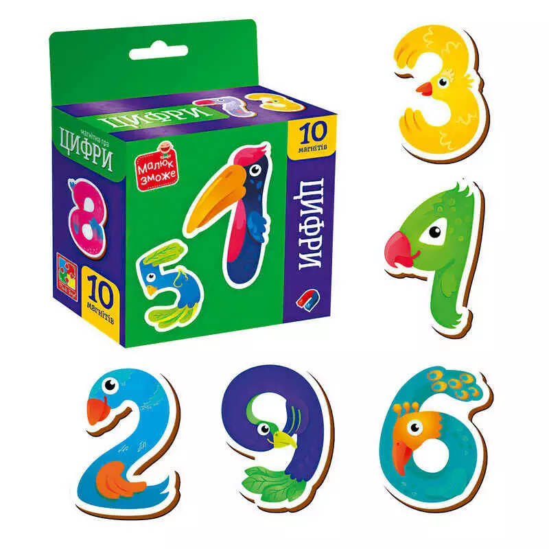 гр Набір магнітів "Цифри" VT3106-37 (30) "Vladi Toys", 10 магнітів, в коробці