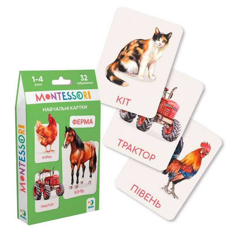 гр Набір навчальних карток Монтесорі "Ферма" 301233 (32) "DoDo", 16 двосторонніх карток, в коробці
