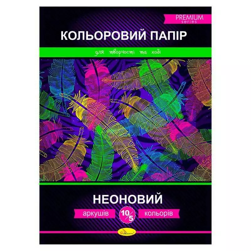 гр Набір одностороннього кольорового паперу "Неоновий" АП-1220 PREMIUM В5, 10 арк (25) "Апельсин"