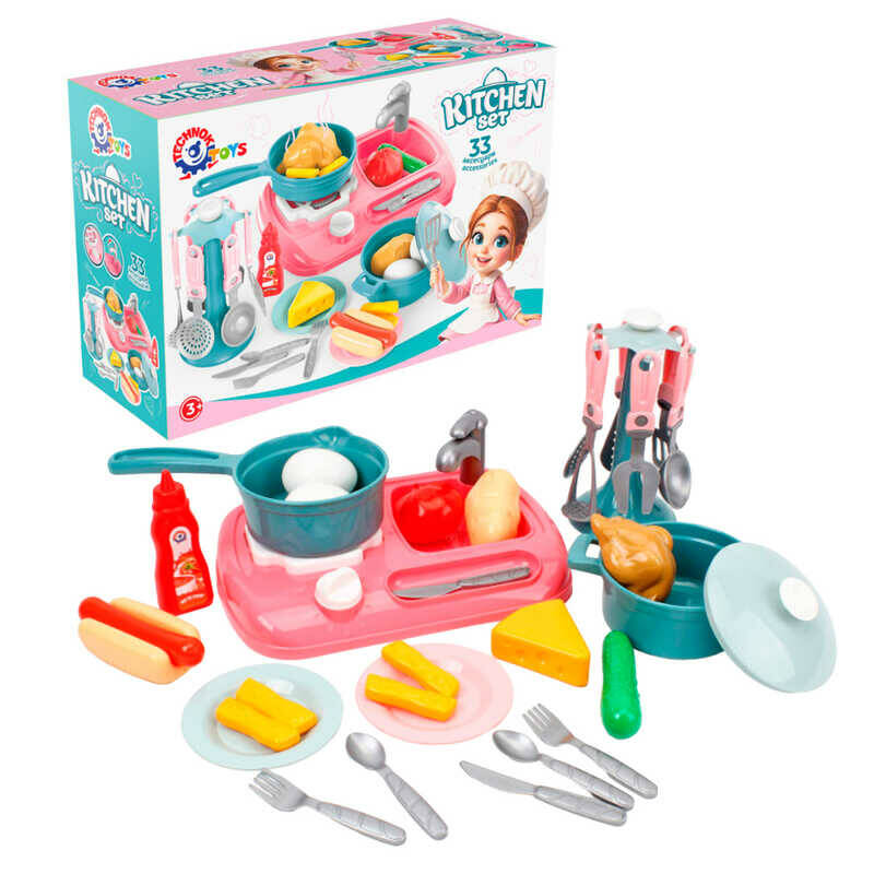 гр Набір посуду 3021 (3) "Technok Toys", 33 предмети, плита, посуд, муляжі їжі, в коробці