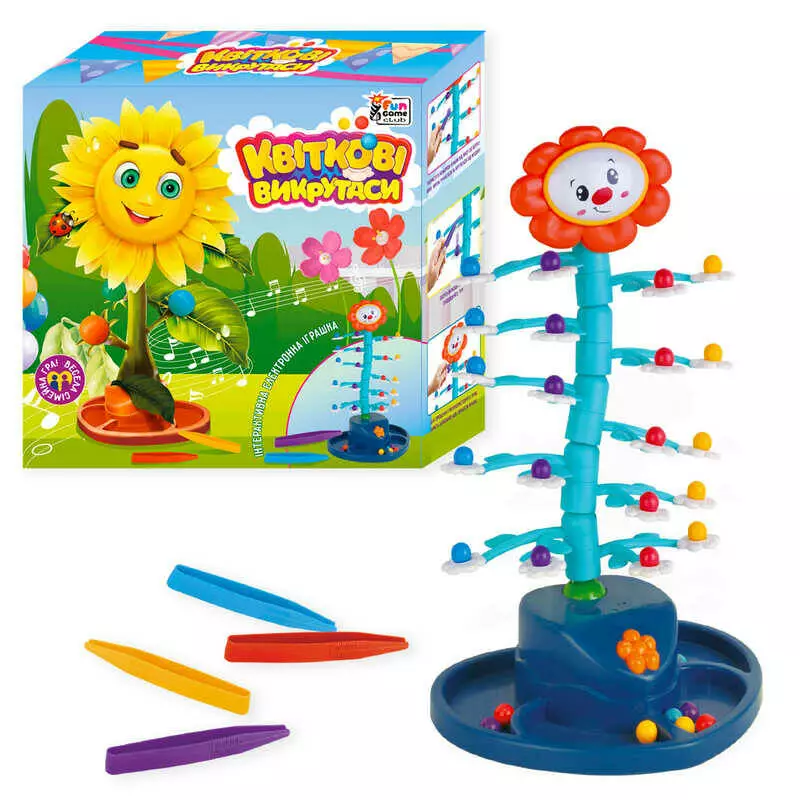 гр Настільна гра "Квіткові викрутаси" 70290 (12/2) "4FUN Game Club", звуки, мелодія, обертається, кульки, пінцети, в коробці