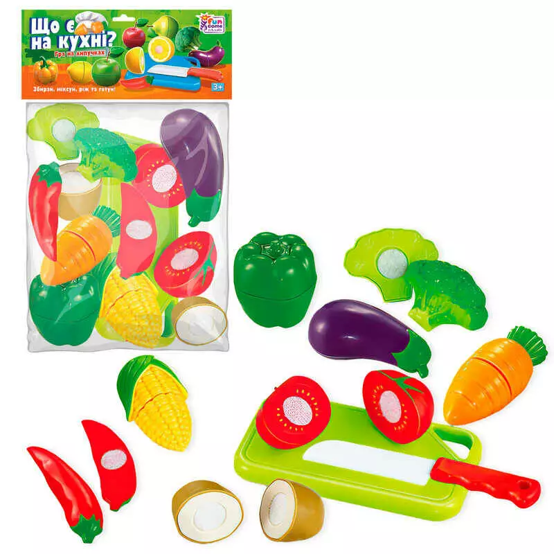 гр Овочі на липучках “Що є на кухні?” 65262 (192/2) "4FUN Game Club", 10 елементів, обробна дошка, ніж, у пакеті