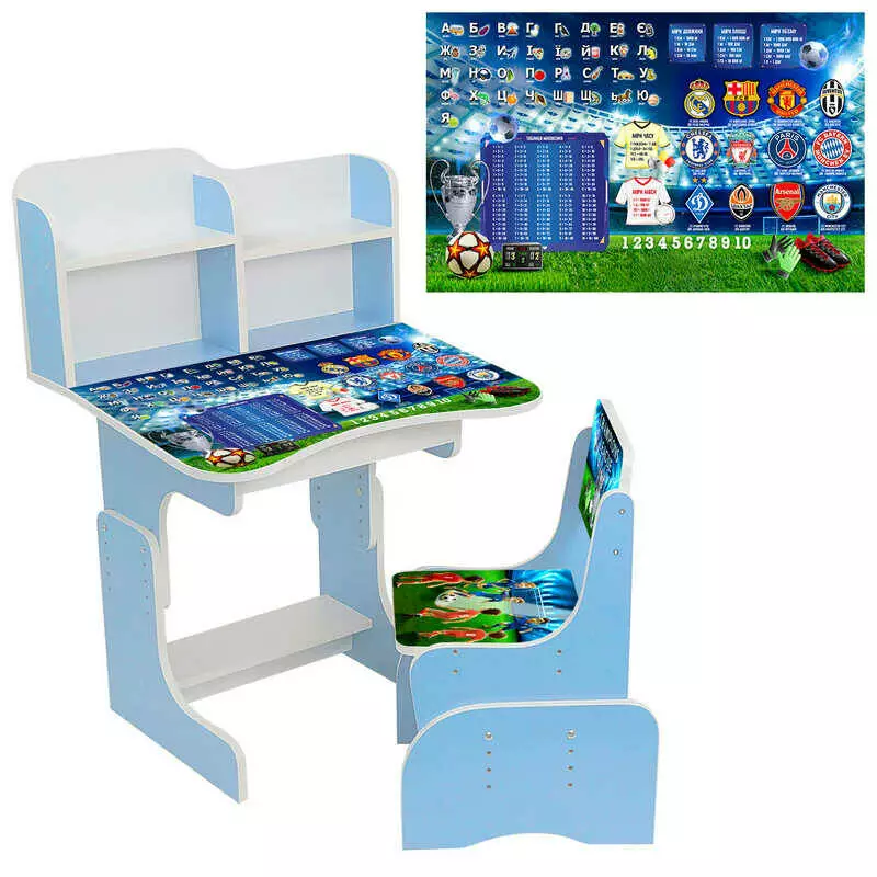 гр Парта шкільна "Футбол" ПШ 051 (1) ЛДСП, колір блакитний, 69*45 см, + 1 стілець, з пеналом