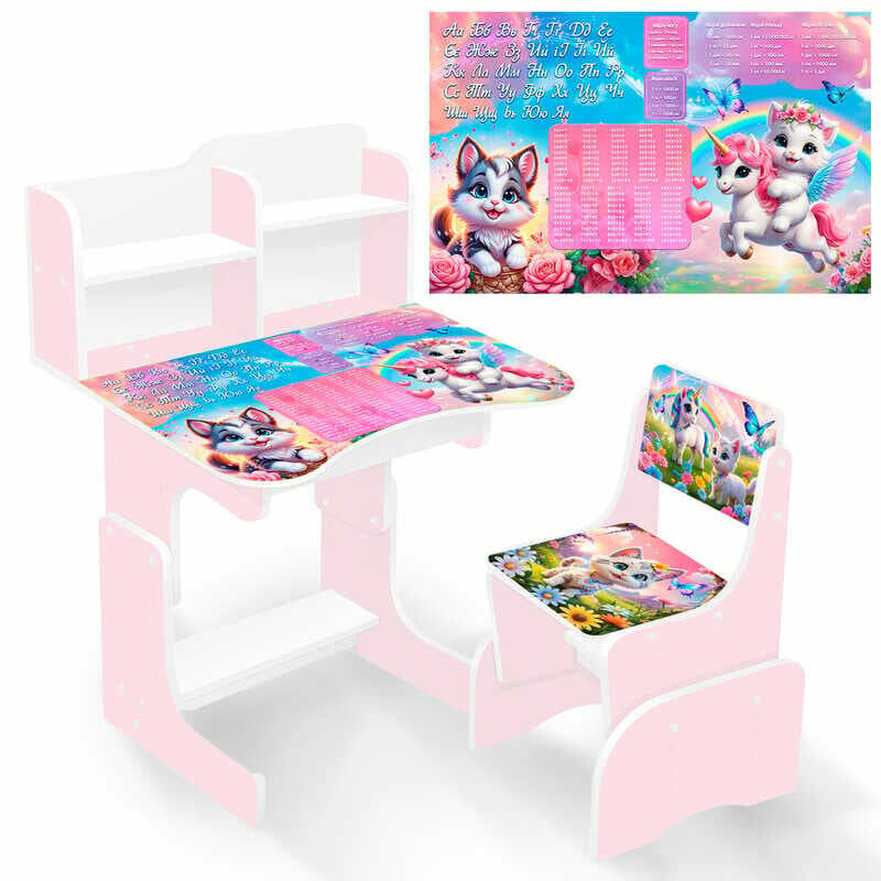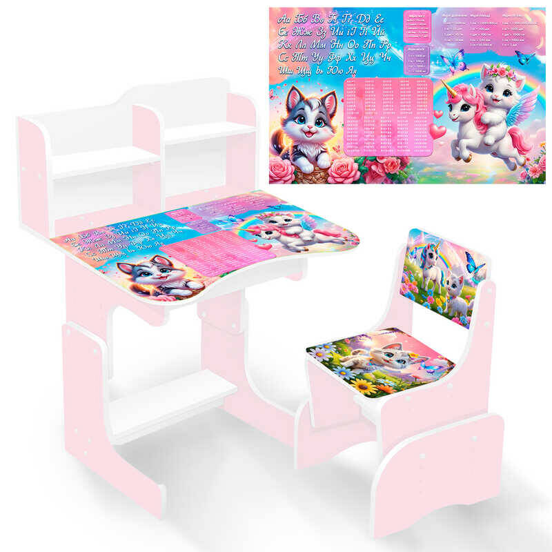 гр Парта шкільна "Кошенята з поні" ПШ 055 (1) ЛДСП, колір рожевий, 69*45 см, + 1 стілець, з пеналом