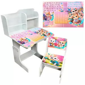 гр Парта шкільна "Котики" ПШ 058 (1) ЛДСП, біле дерево, 69*45 см, + 1 стілець, з пеналом