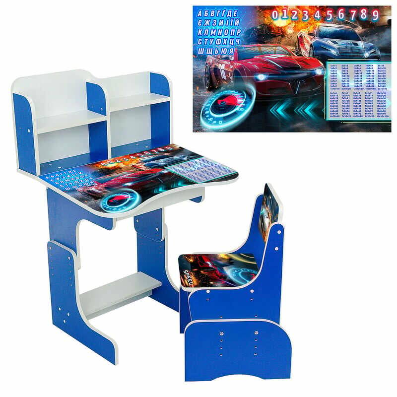 гр Парта шкільна "Машини" ПШ 040 (1) ЛДСП колір блакитний, 69*45 см, + 1 стілець, з пеналом