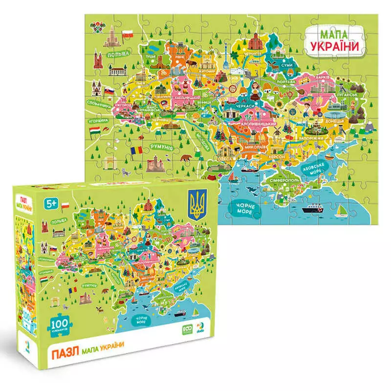 гр Пазл "Мапа України" 300706 (48) "DoDo", назви українською мовою, 100 елементів, розмір зібраного пазла: 39х28 см, в коробці