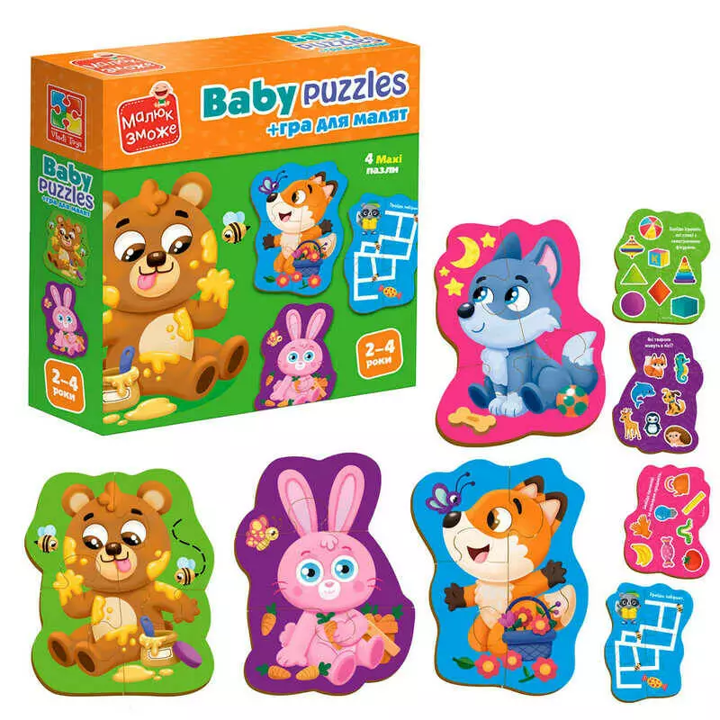 гр Пазли картонні з грою "Лісові звірі" VT1722-26 укр (28) "Vladi Toys"