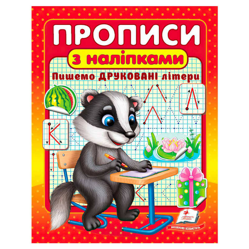 гр Прописи+наліпки "Пишемо друковані літери" (борсук) 9786178357139 (50) "Пегас"