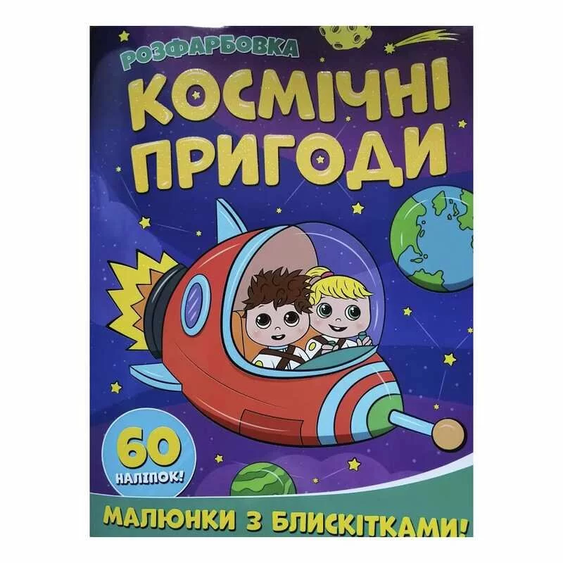 гр Розфарбовка А4 з блискітками + 60 наліпок "Космічні пригоди" (50) 9786172107754