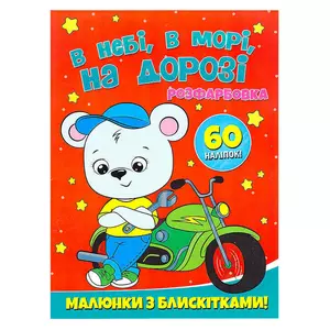 гр Розфарбовка А4 с блискітками + 60 наліпок "В небі, в морі, на дорозі" (50) 9786172107563