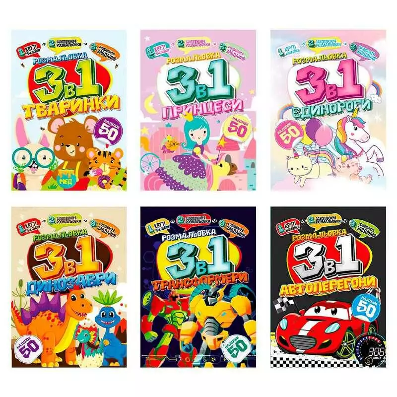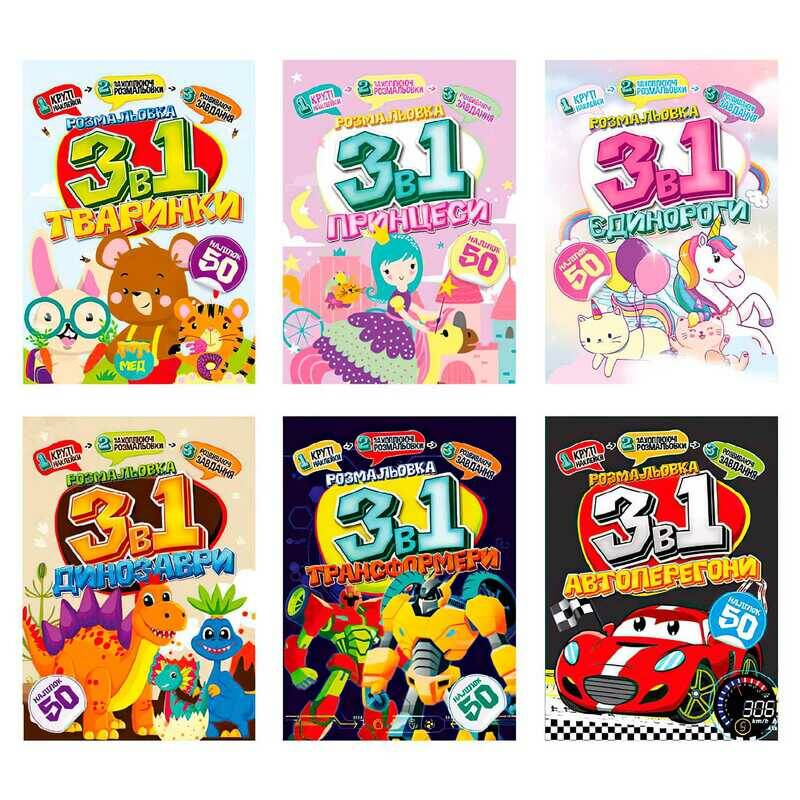 гр Розмальовка 3в1 "МІКС " РМ-89 (12) "Апельсин", розмальовки, розвивальні завдання, наліпки