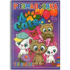 гр Розмальовка А4 + 100 наклейок: "Чотири кота" /укр/ (50) 9789669756909 "Jumbi"