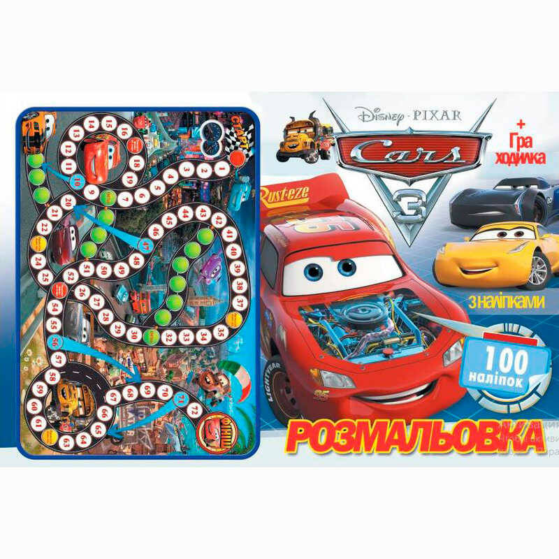 гр Розмальовка А4 + 100 наклейок: "Машинки 3" /укр/ (50) формат А4, 16 сторінок + гра бродилка в подарунок 6900203254580