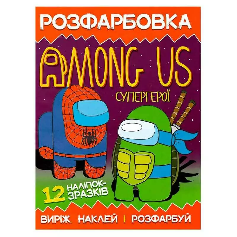 гр Розмальовка для маленьких "Виріж,наклей і розфарбуй" Among Us Супергерої 12 наліпок 6902021050610 (50)