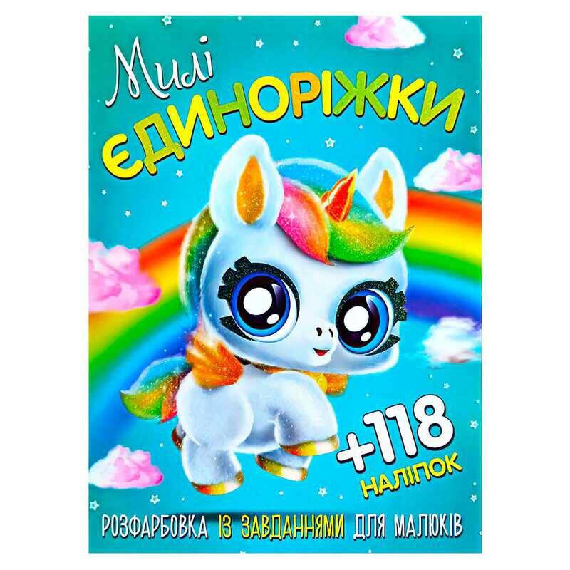 гр Розмальовка із завданнями для дітей +118 наклейок А4: "Милі єдиноріжки" 6902019120417 (50)
