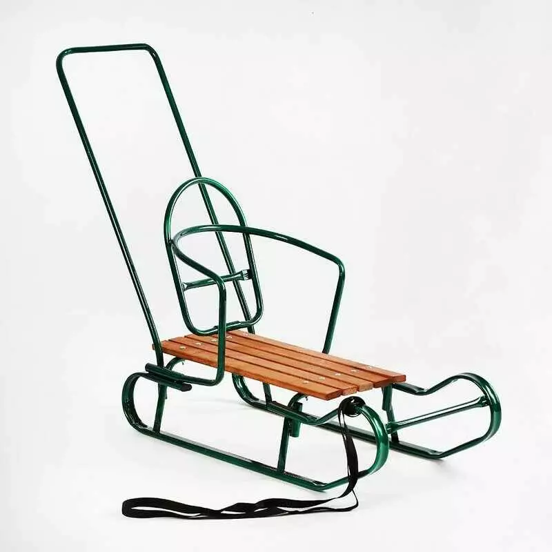 гр Санки "Королівські" 24903 плоскі полоззя, з ручкою, колір зелений (1)