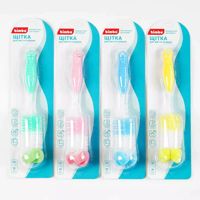 гр Щітка для миття пляшечок C 63890 (144) "Bimbo", 4 види, з поролоном, на листі, ВИДАЄТЬСЯ ТІЛЬКИ МІКС ВИДІВ