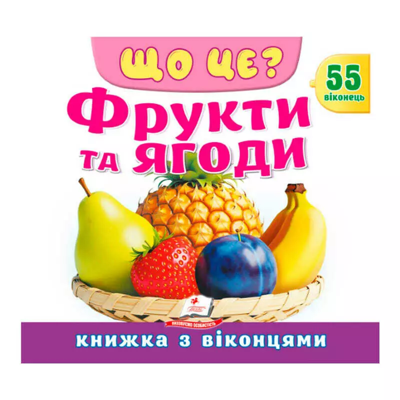 гр ЩО ЦЕ? "Фрукти та ягоди" 9786178638993 (16) "Пегас", 55 віконець, 10 сторінок