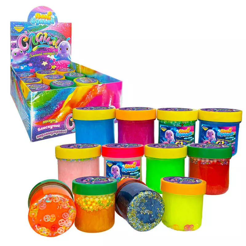 гр Слайм блискучий 32972 (1) "Пані Булька", ЦІНА ЗА 12 ШТУК, 120 г, з наповненням, середня банка, 12 кольорів, МІКС