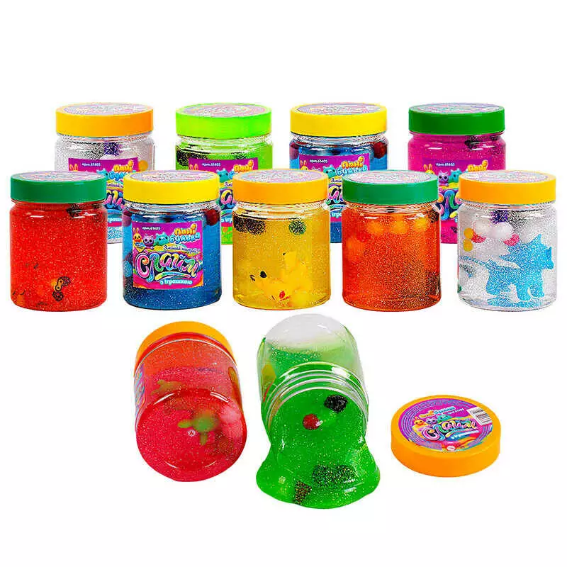 гр Слайм з іграшкою 61405 (36) "Пані Булька", ЦІНА ЗА 1 ШТ, 6 кольорів, велика банка, 200 г, помпони, ароматизований, МІКС ВИДІВ