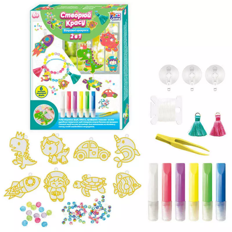 гр Створюй красу "Вітражні прикраси" 54715 (36) "4FUN Game Club", фарби, інструменти, стрази, в коробці