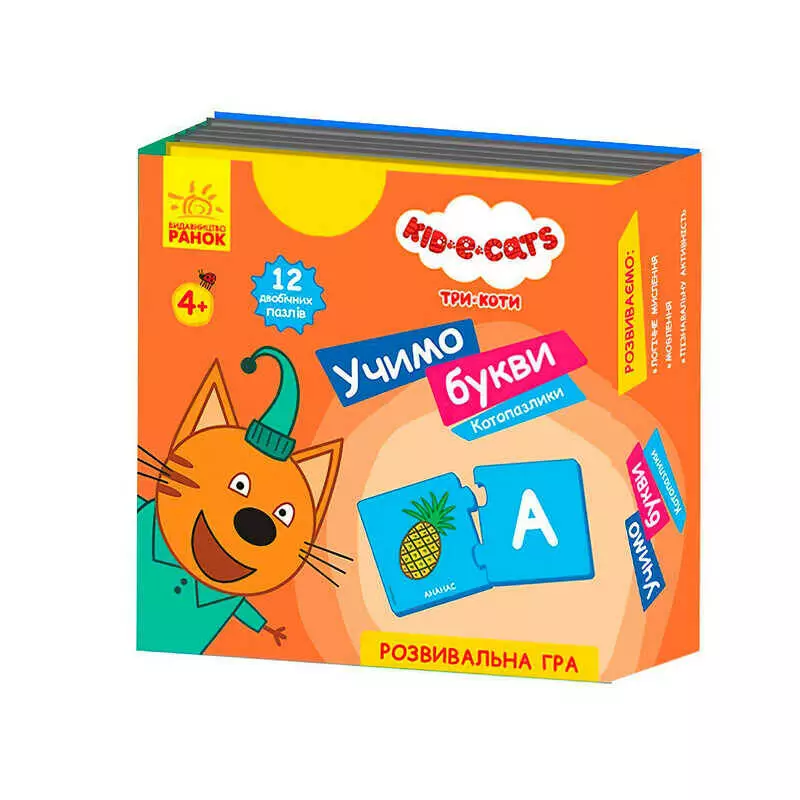 гр Три коти "Кото-пазлики. Учимо букви" ЛП1449002У (40) "Ранок", 12 двобічних пазлів, в коробці