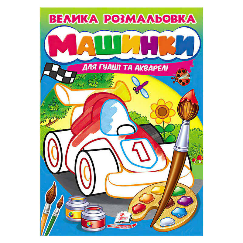 гр Велика розмальовка "Машинки" для гуаші та акварелі 9789664664094 (20) "Пегас", 32 сторінки, м’яка обкладинка