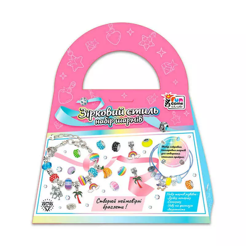 гр Зірковий стиль 21010 (48) "4FUN Game Club", створи прикрасу, 2 розміри шармів, основи для підвіски, аксесуари, основа для браслету, в коробці