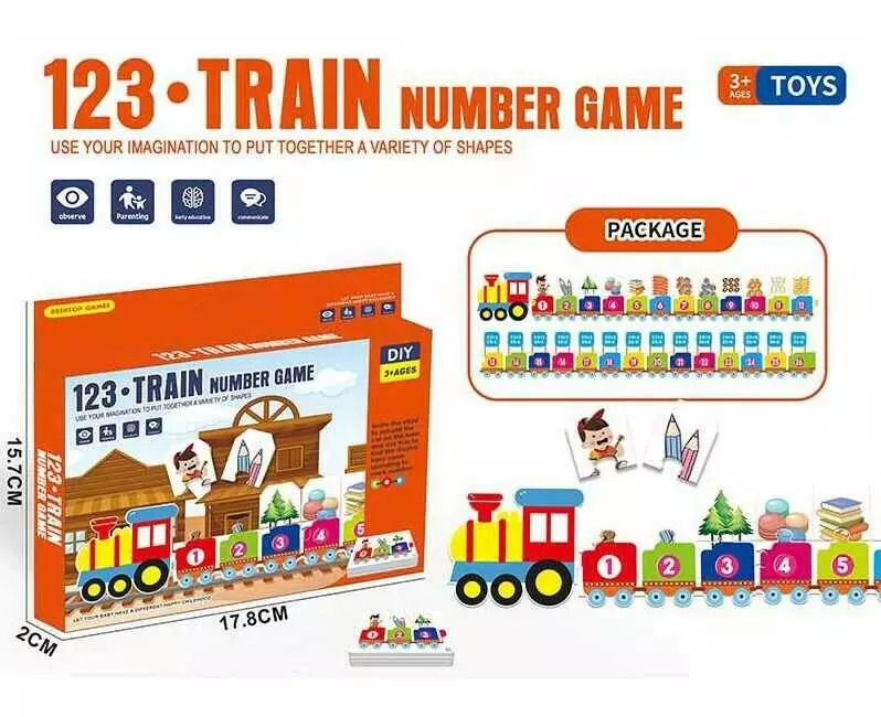 Гра 090 (120/2) локомотив, 9 карток із завданнями, 26 пазлів, математичні приклади, нумерація вагонів та карток, коробці