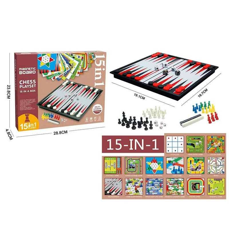 Гра 2014 BC (36/2) 15 в 1, ігрові поля, ігрові елементи, хрестики-нулики, шахи, шашки, нарди, космічна гра, лудо, змії та драбини, в коробці