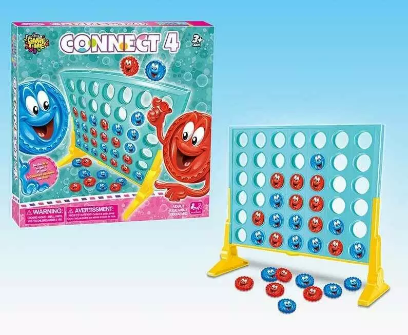 Гра 33887 (72/2) "Збери чотири", двостороння основа, 42 отвори, кришечки двох кольорів, наліпки, в коробці