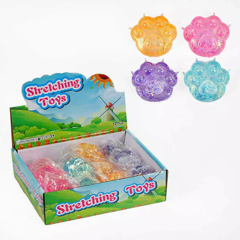 Гра антистрес C 65338 (24) ЦІНА ЗА 12 ШТУК В БЛОЦІ “Котяча лапка”, гель, блискітки, в коробці